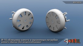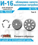 RS72034 И-16 облицовка капота и выхлопные патрубки раннего образца (без воздухозаборника). М1:72