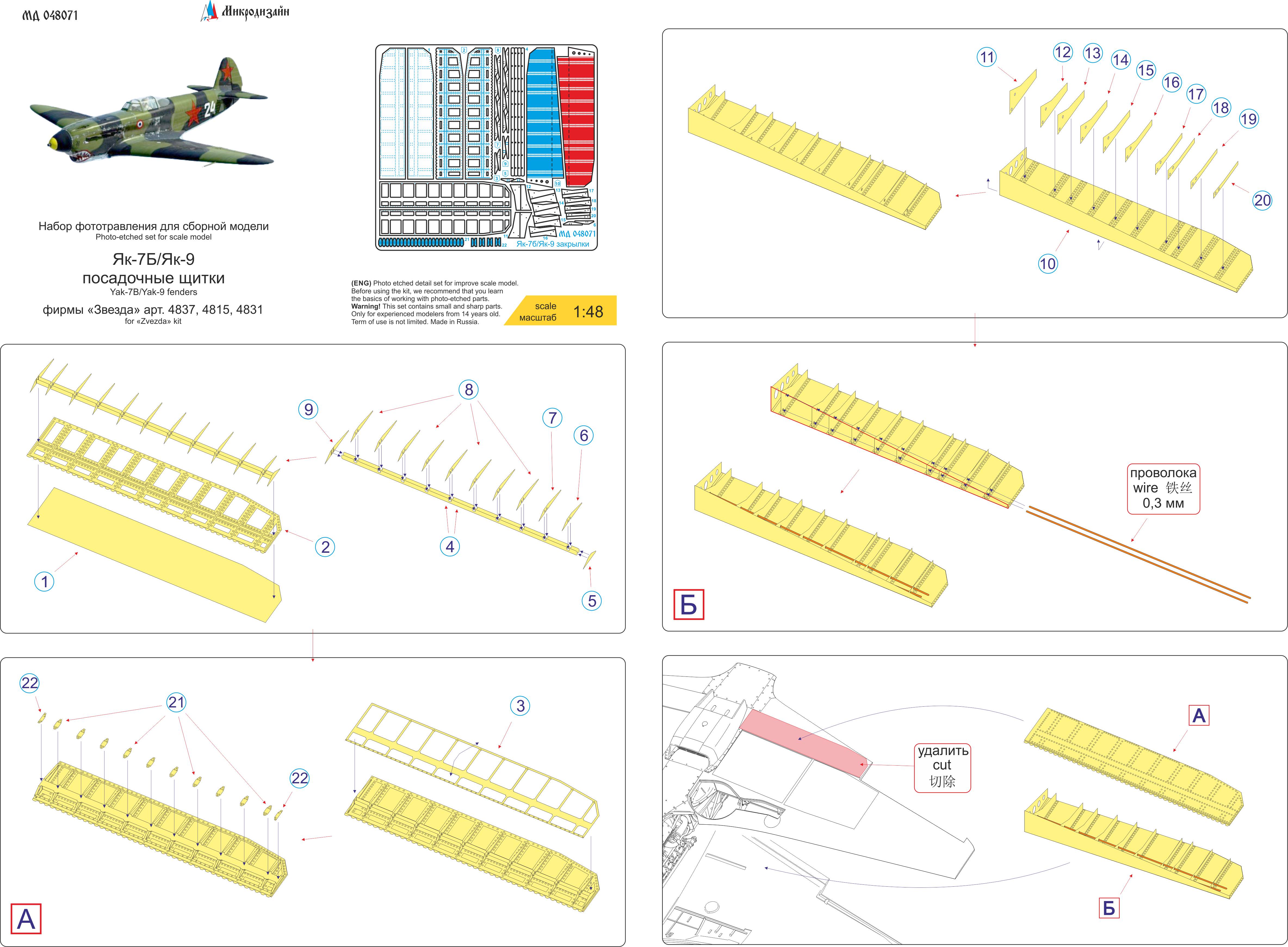МД 048071 Набор фототравления посадочных щитков на Як-7Б/Як-9 от Звезды. Масштаб 1:48, Материал: латунь 0,15 мм. Набор комплектуется пластиной фототравления и полноцветной инструкцией. Количество уникальных деталей 22. Уровень сложности: средний.