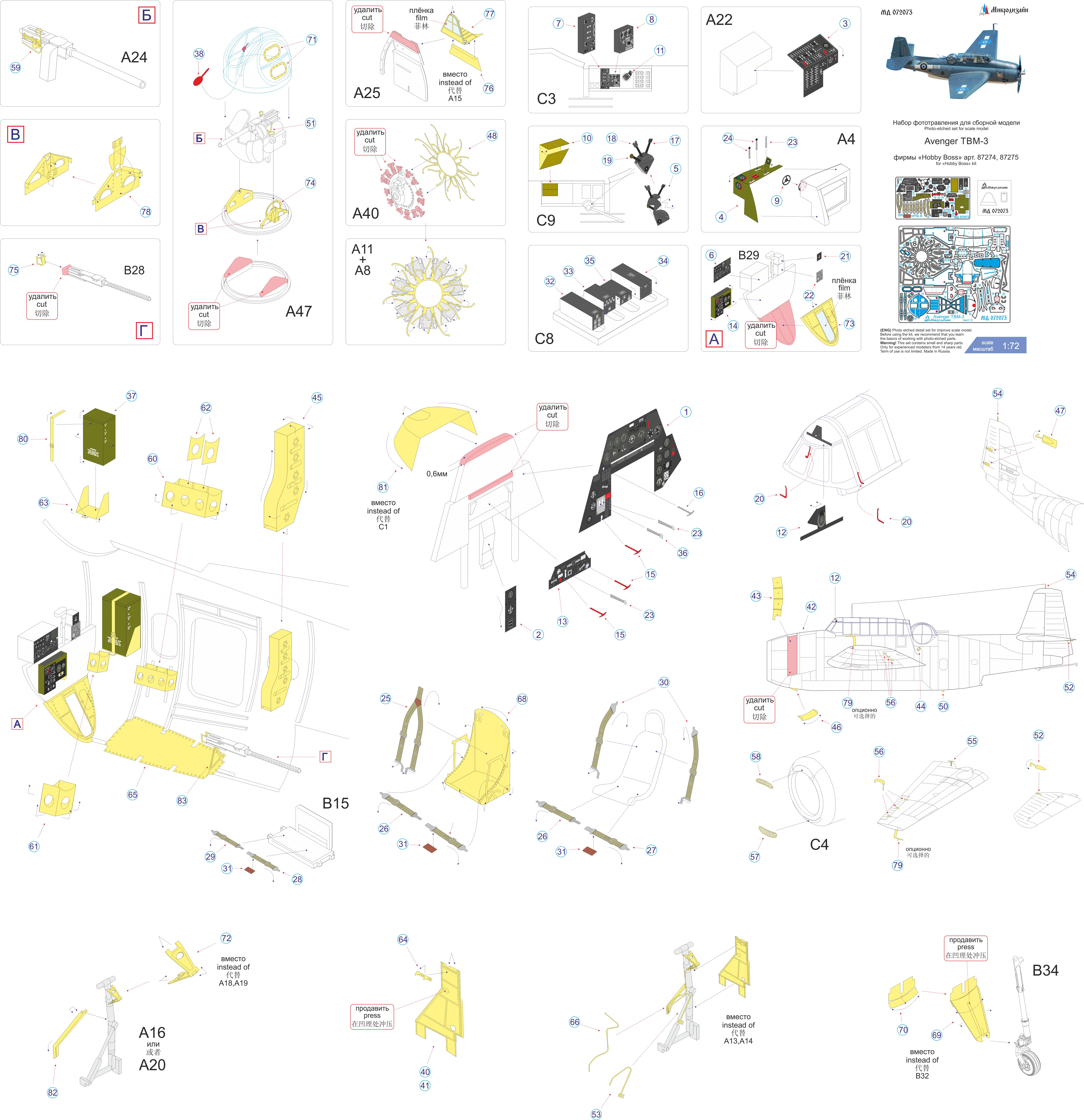 МД 072073 Набор цветного фототравления для Avenger TBM-3 от Hobby Boss. Масштаб 1:72. Материал: латунь 0,15 мм. Набор комплектуется 2 платами фототравления (в том числе объёмные цветные приборные доски) и цветной инструкцией. Количество уникальных деталей: 83 шт. Уровень сложности - средний.