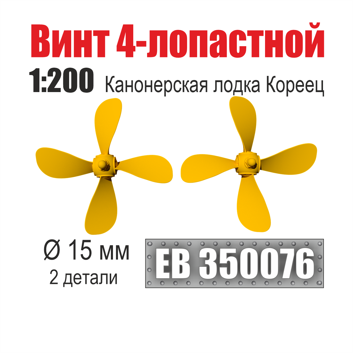 EB 350076 Винт 4-лопастной 15 мм Канонерская лодка Кореец 1:200 (уп. 2 шт)