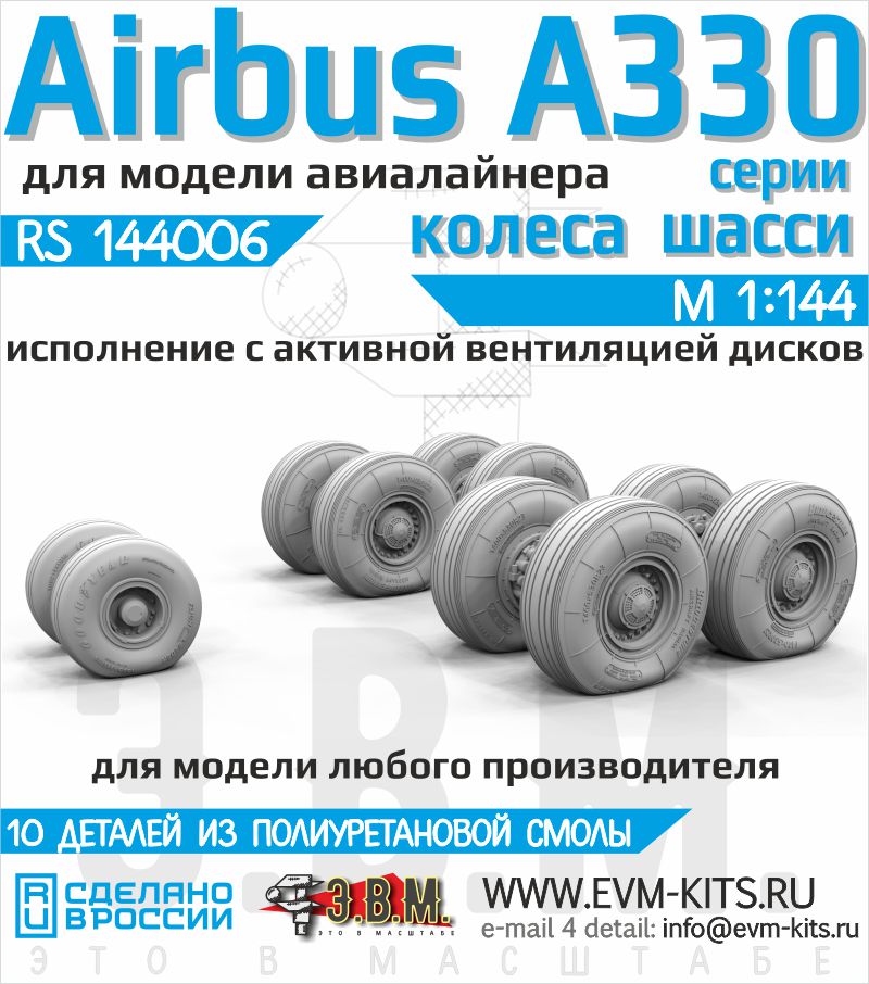 144006 Airbus A330 Колеса шасси с активной вентиляцией дисков М1:144