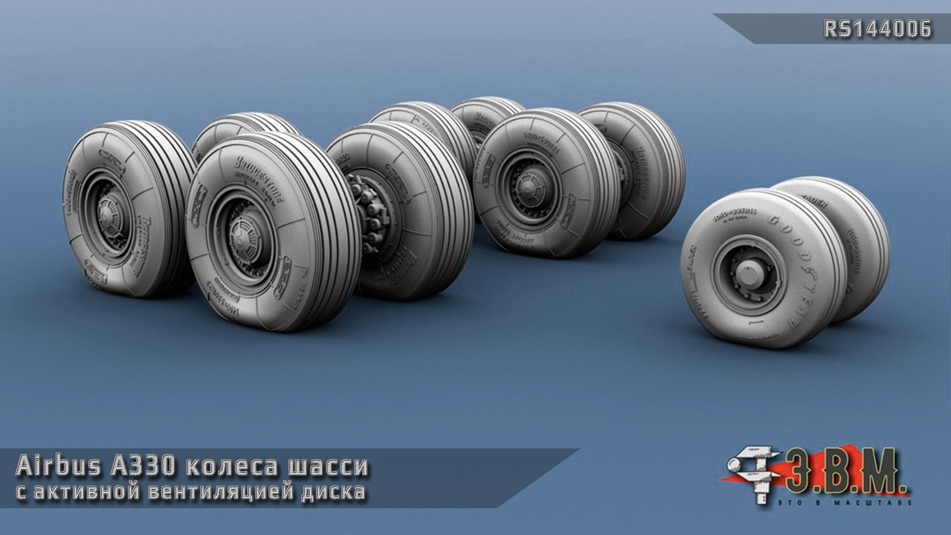 Колеса шасси для модели пассажирского авиалайнера Airbus A330 с активной вентиляцией дисков.