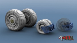 В наборе смоляные колеса основные и носовые с имитацией нагрузки, ступицы основного колеса, два грязезащитных щитка - серийный и предсерийный (3D-печать) и окрасочные маски.