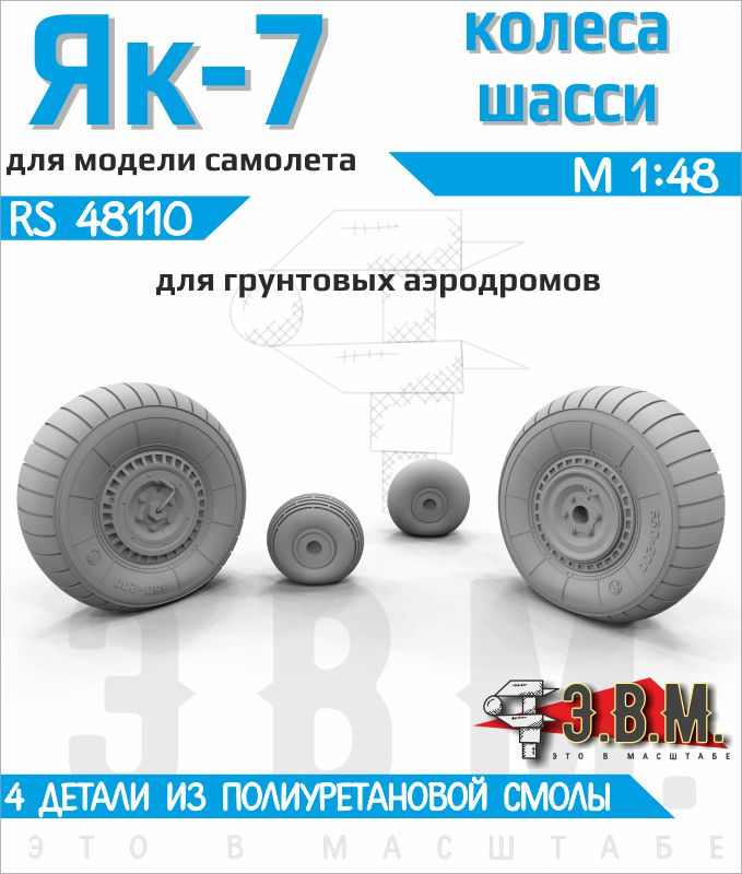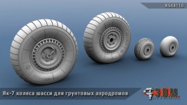 RS48110 Як-7 колеса шасси (для грунтовых аэродромов). М1:48