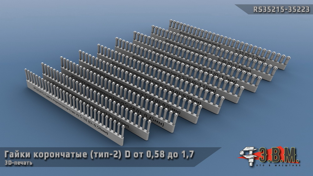 RS35215 Гайка корончатая тип-2, S=18 (D=0,58) мм. Посадочный D=0,4 мм. М1:35