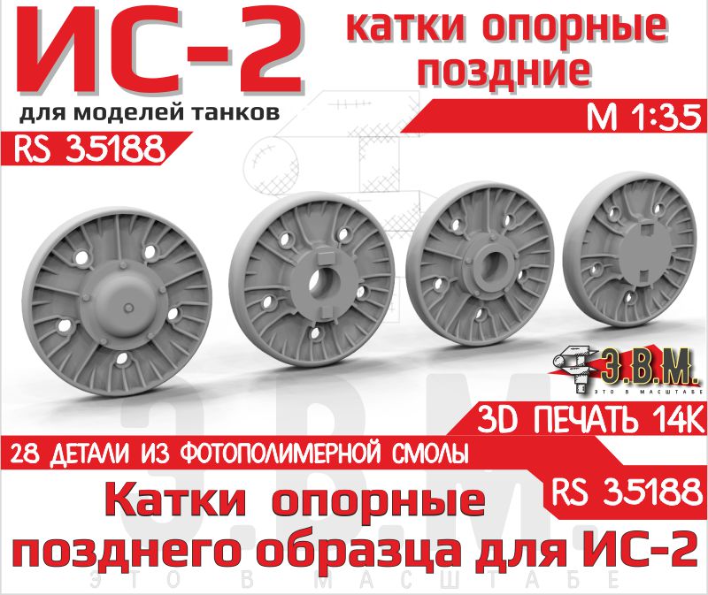 RS35188 ИС-2 опорные катки поздние (3D-печать). М1:35