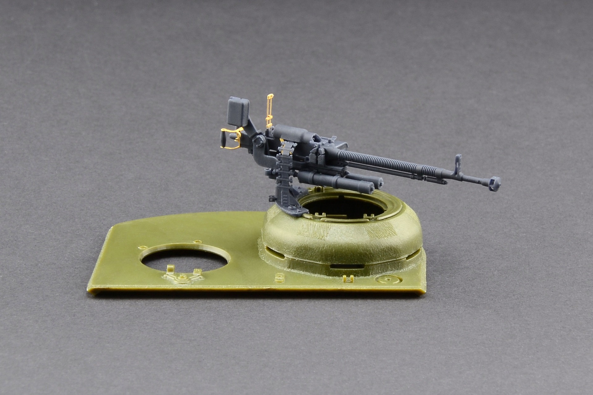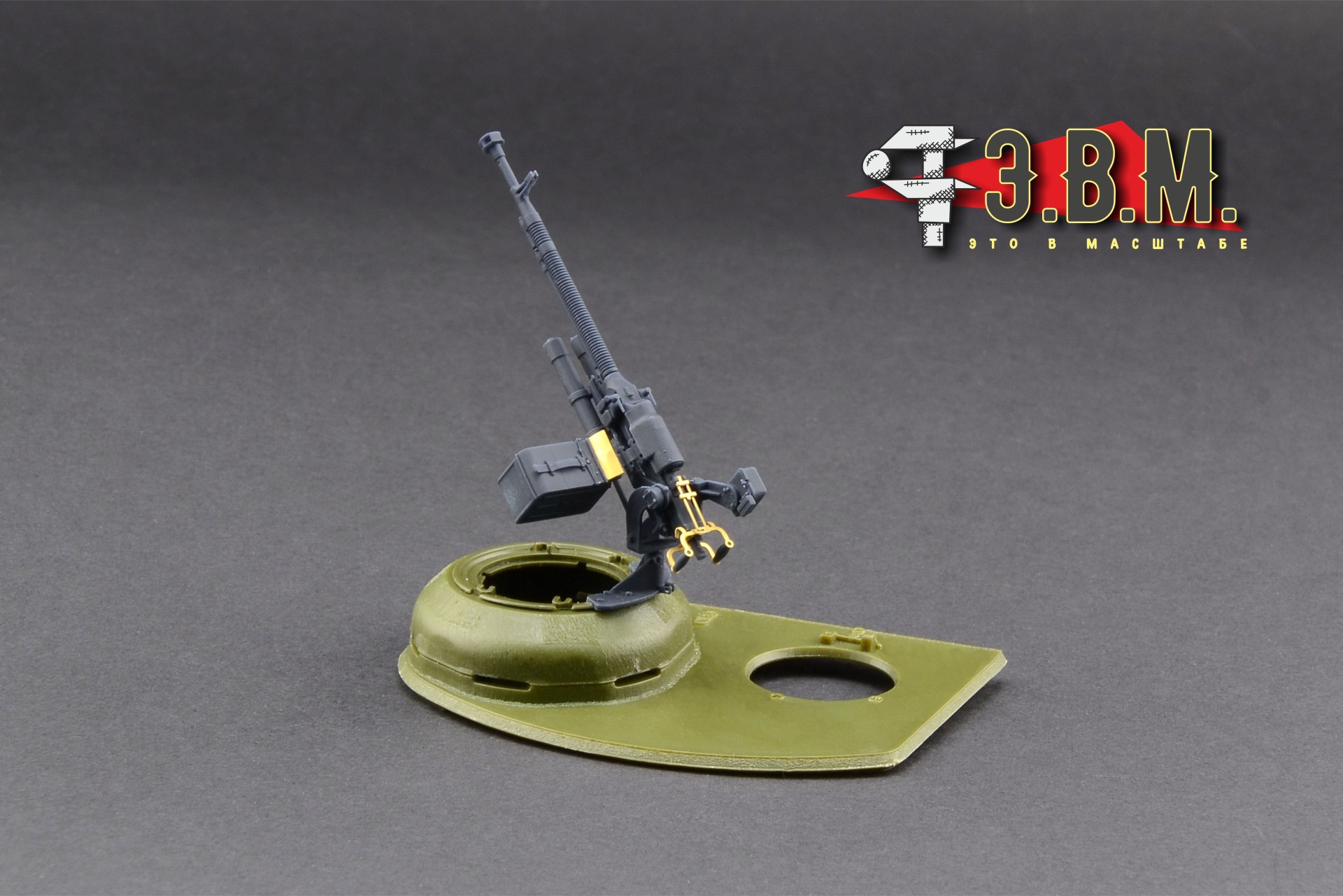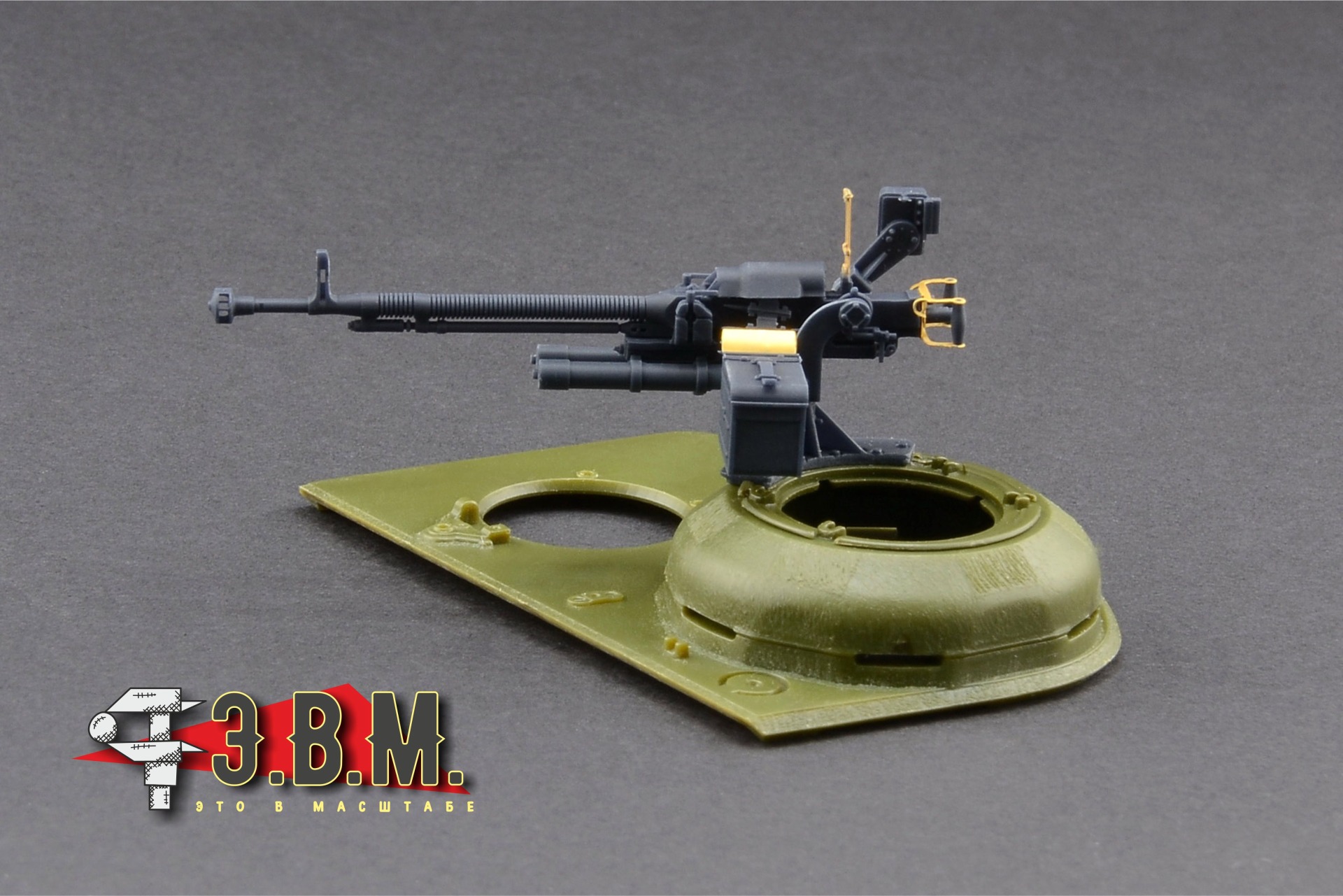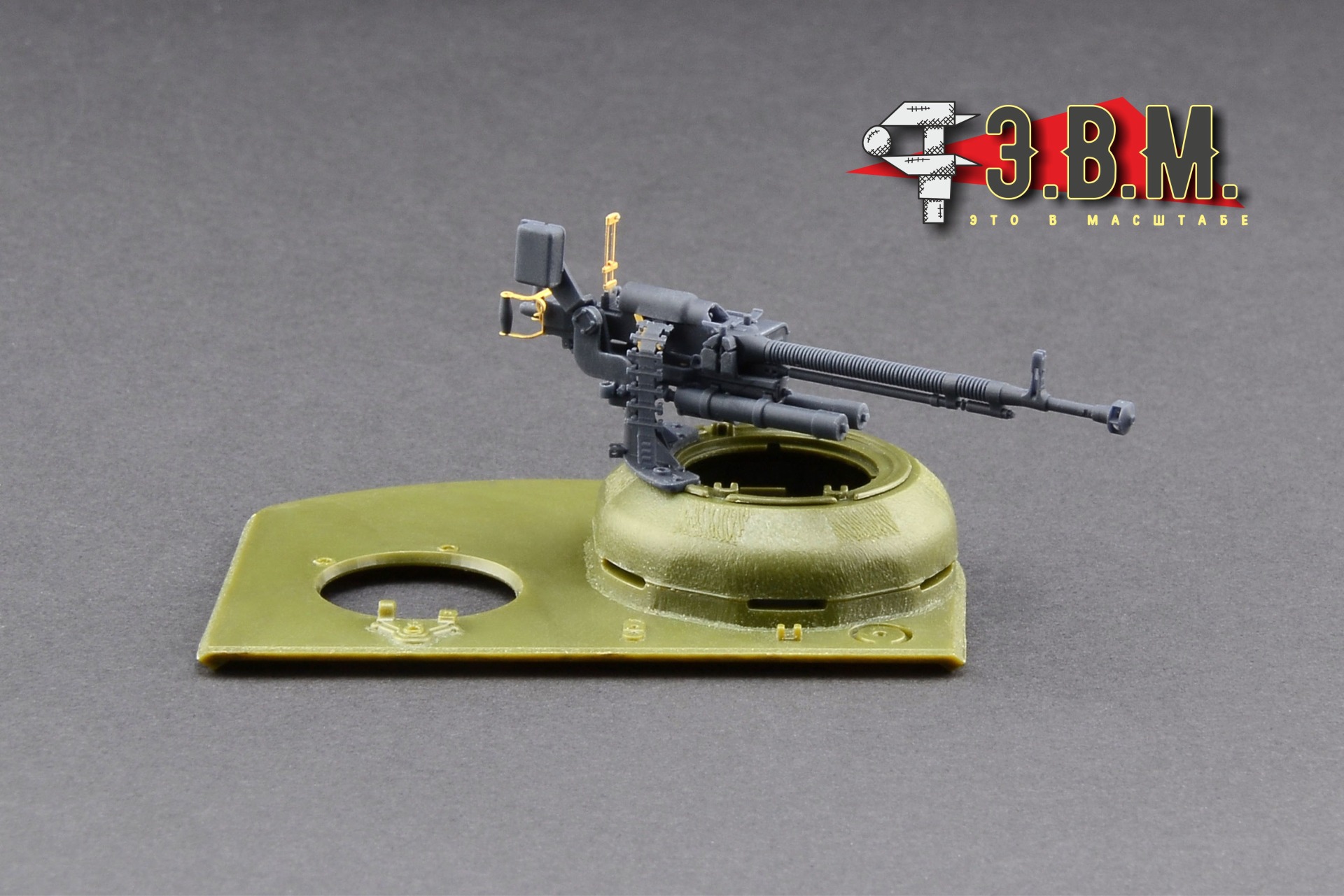 ДШК можно собрать в двух вариантах - на прямую наводку и под углом 45 градусов. В комплекте есть турельная площадка для установки пулемета на комбашню ИС-2, которая совместима так же и с нашим набором комбашни УЗТМ. В остальном пулемет универсальный и подходит для других видов техники с аналогичной конструкцией турели.
