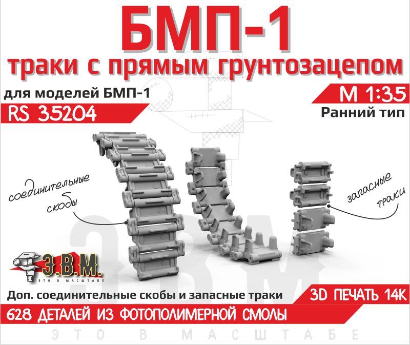 RS35204 БМП-1 Траки с прямым грунтозацепом, ранний тип. М1:35