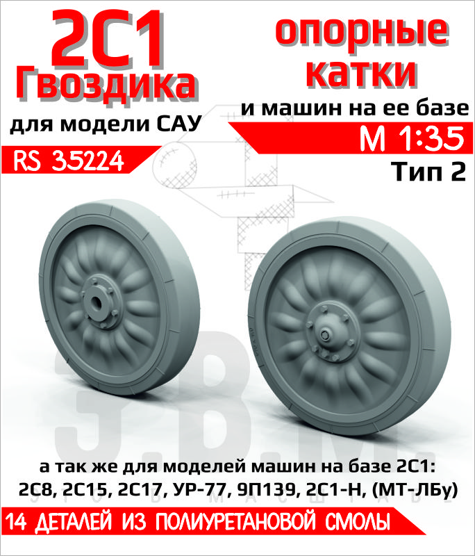 RS35224 САУ 2С1 "Гвоздика" катки опорные второго типа. (Смола). М1:35
