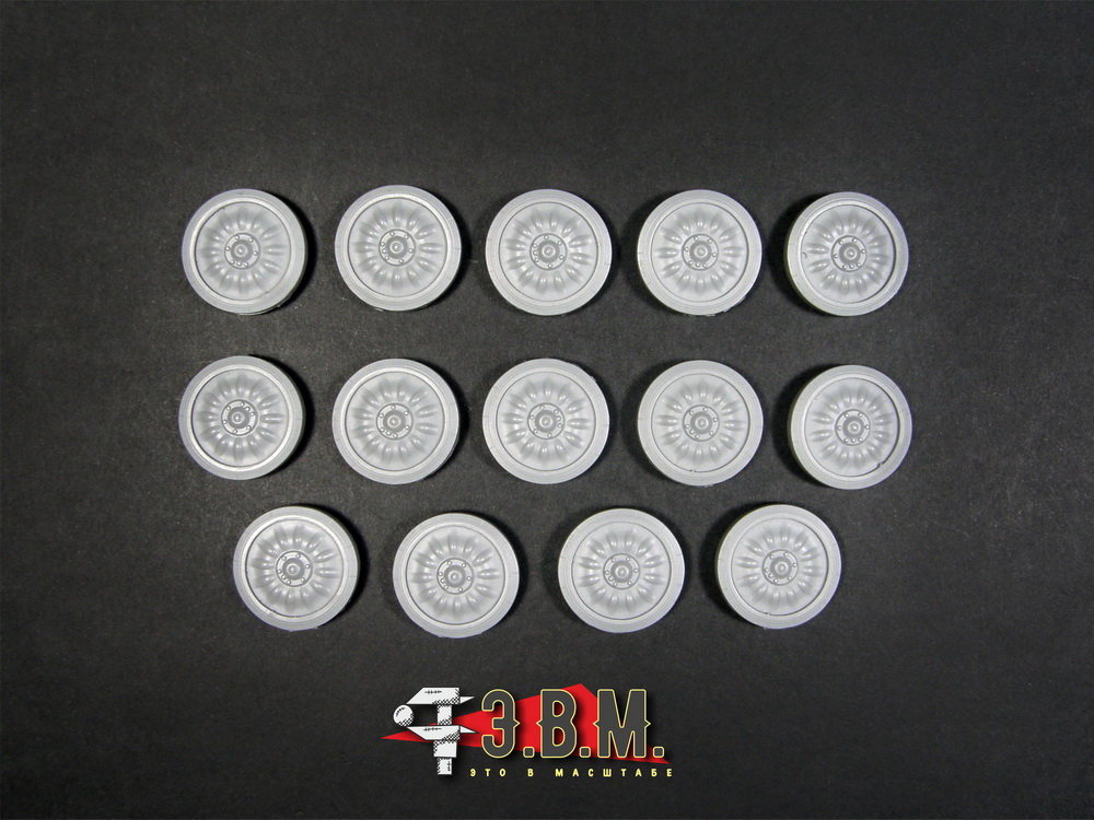 В наборе 14 детально проработанных катков из полиуретановой смолы. Диаметр посадочного отверстия 1.5 мм. Катки универсальные, могут быть адаптированы под модели любых производителей.