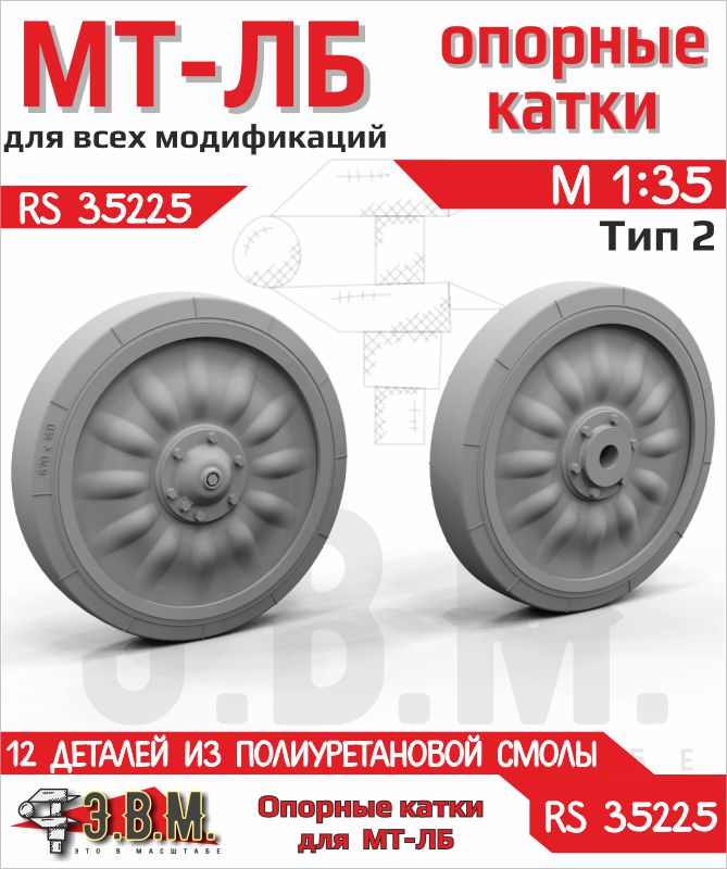 RS35225 МТ-ЛБ Опорные катки. Тип-2. (Смола). М1:35