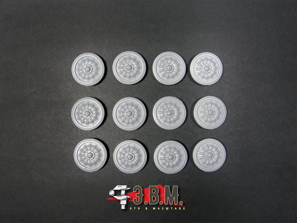 В наборе 12 детально проработанных катков из полиуретановой смолы.