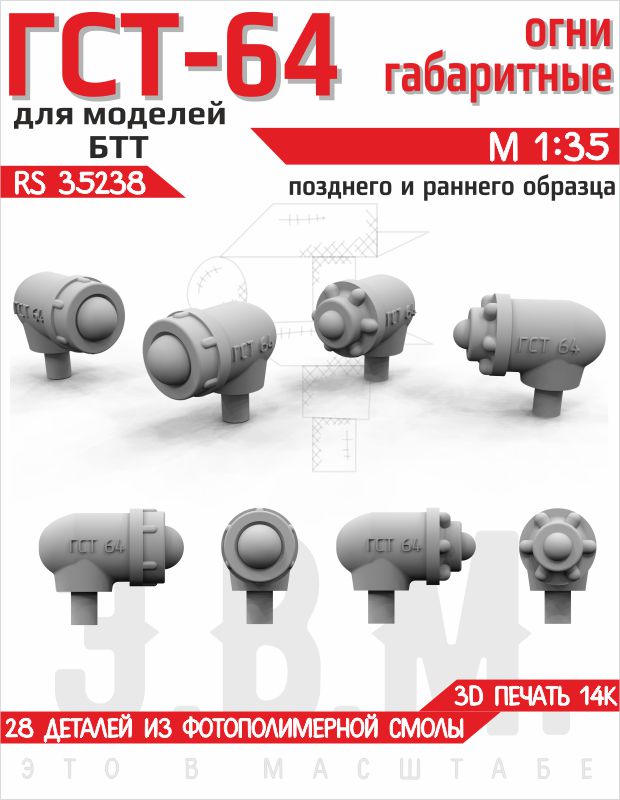RS35238 ГСТ-64 габаритные огни раннего и позднего образца. М1:35