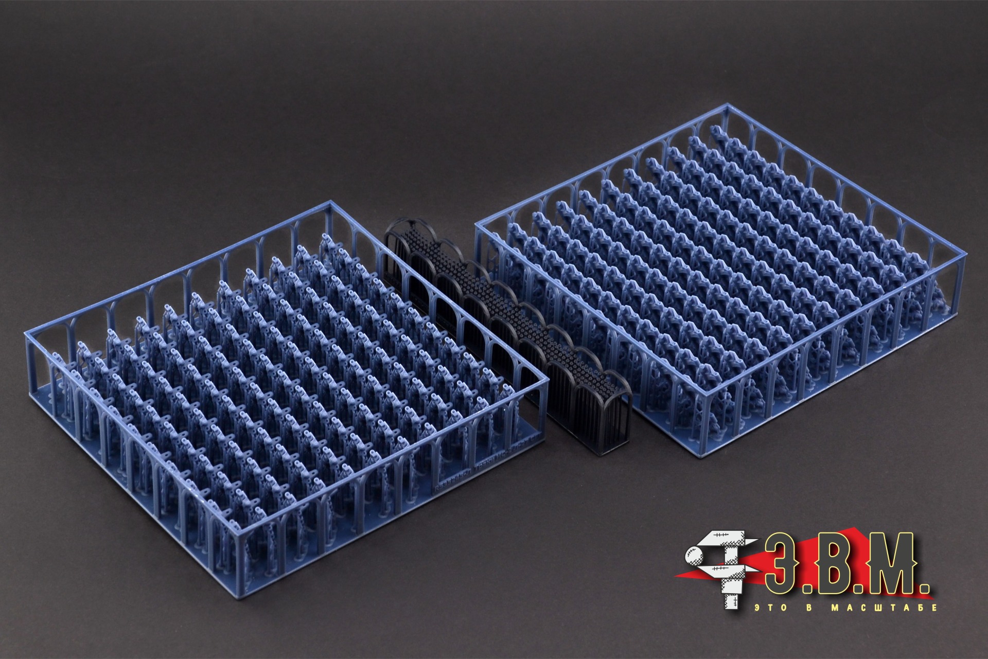 В наборе по 120 левых и правых траков и 300 пальцев для их соединения. Это в полтора разе больше, чем нужно для сборки полноценной ленты, так что Вы можете не опасаться что-то испортить. Плюс останется запас, который можно разместить на броне.