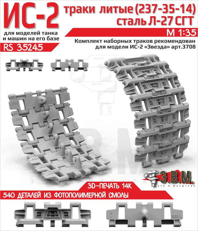 RS35245 ИС-2 траки литые (237-35-14) сталь Л-27СГТ. М1:35