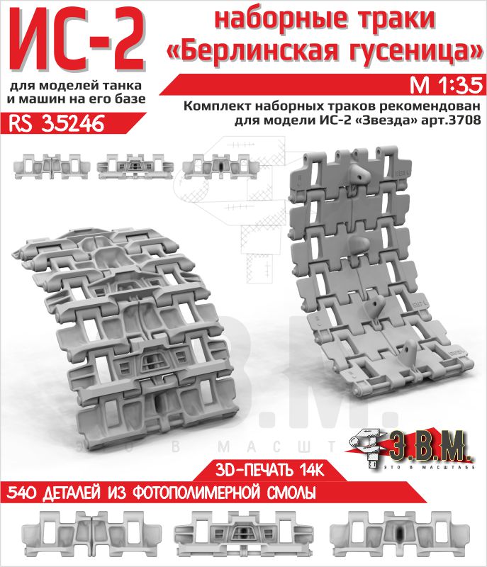 RS35246 ИС-2 траки наборные "Берлинская гусеница". М1:35